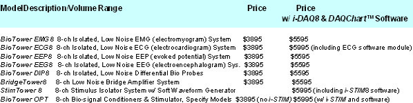 (an 8-CH bridge amp), or BioTower ECG8